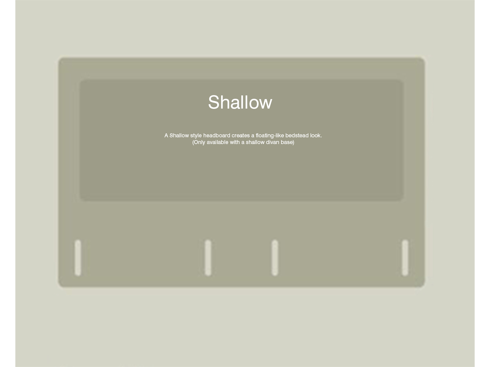 Those who have opted for a shallow base can choose a Shallow style headboard which creates a floating-like bedstead look.